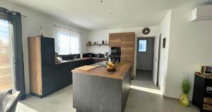 La cuisine ouverte dialogue naturellement avec le salon et la salle à manger, favorisant les échanges et les moments partagés. Cette configuration permet de structurer les fonctions (cuisiner, recevoir, se détendre) sans cloisonner les volumes.
