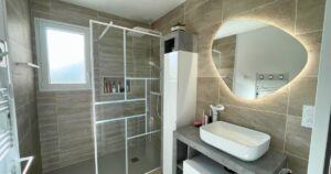 À l’opposé de la pièce de vie, la partie nuit a été volontairement isolée. Cette organisation garantit une tranquillité appréciable, notamment lorsque les rythmes de vie diffèrent au sein du foyer.