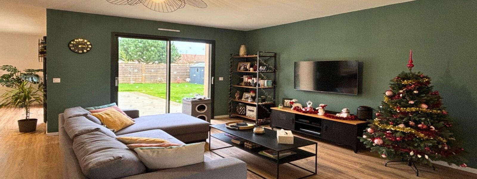 À l’arrière, le terrain a été aménagé de manière à prolonger naturellement les espaces de vie vers l’extérieur. Cet aménagement permet de profiter pleinement du jardin, dans un cadre agréable et fonctionnel, en lien direct avec les volumes intérieurs.